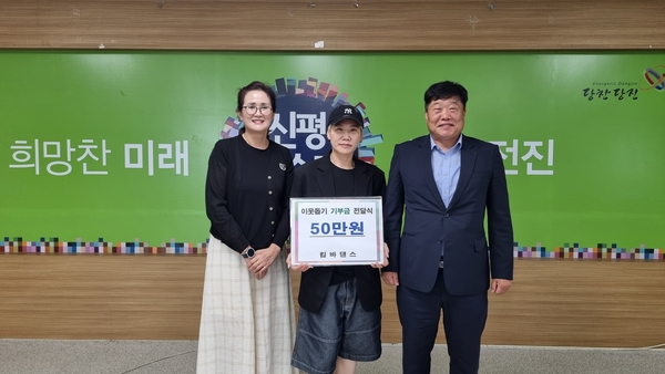 지난 8일 당진시 신평면에 소재한 킴바댄스학원(원장 김정은)은 신평면 행정복지센터를 방문해 이웃돕기 성금 50만 원을 전달했다.