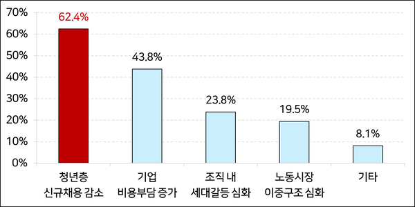 법정 정년연장 시 예상되는 가장 큰 부작용으로 ‘청년 일자리 감소’가 지목됐다.