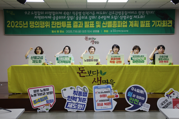 최 위원장은 “다행히 복지부와 의료노조는 감염병 대응체계 구축 등에 대해 합의했지만 윤석열정부 3년 동안 지켜지지 않았다. 새 정부는 의대생과 전공의 문제해결에는 심혈을 기울이면서 희생과 헌신으로 국민을 지켰던 보건의료노동자의 절박한 요구는 왜 제대로 수용하려 하지 않는가”라고 물었다.