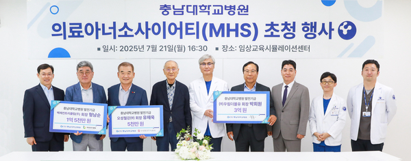 충남대병원 MHS는 병원 사명과 비전에 공감하는 고액 기부자로 구성된 모임으로 이날 행사와 함께 열린 기부금 전달식에서는 박희원 ㈜우림더블유 회장, 유재욱 오성철강㈜ 회장, 형남순 백제컨트리클럽㈜ 회장(MHS 위원장)이 5억 원을 전달했다.