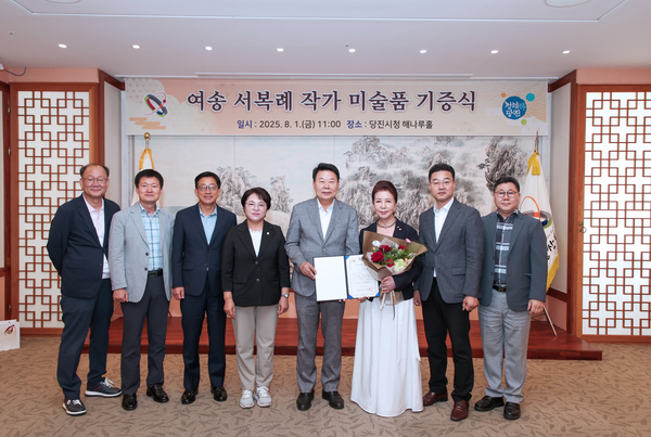 당진시(시장 오성환)는 대한민국 미술대전 초대작가이자 소나무의 사계절 푸르름을 담은 작품 세계로 잘 알려진 여송(如松) 서복례 화백이 8월 1일 당진시청 해나루홀에서 작품 기증식을 가졌다고 밝혔다.