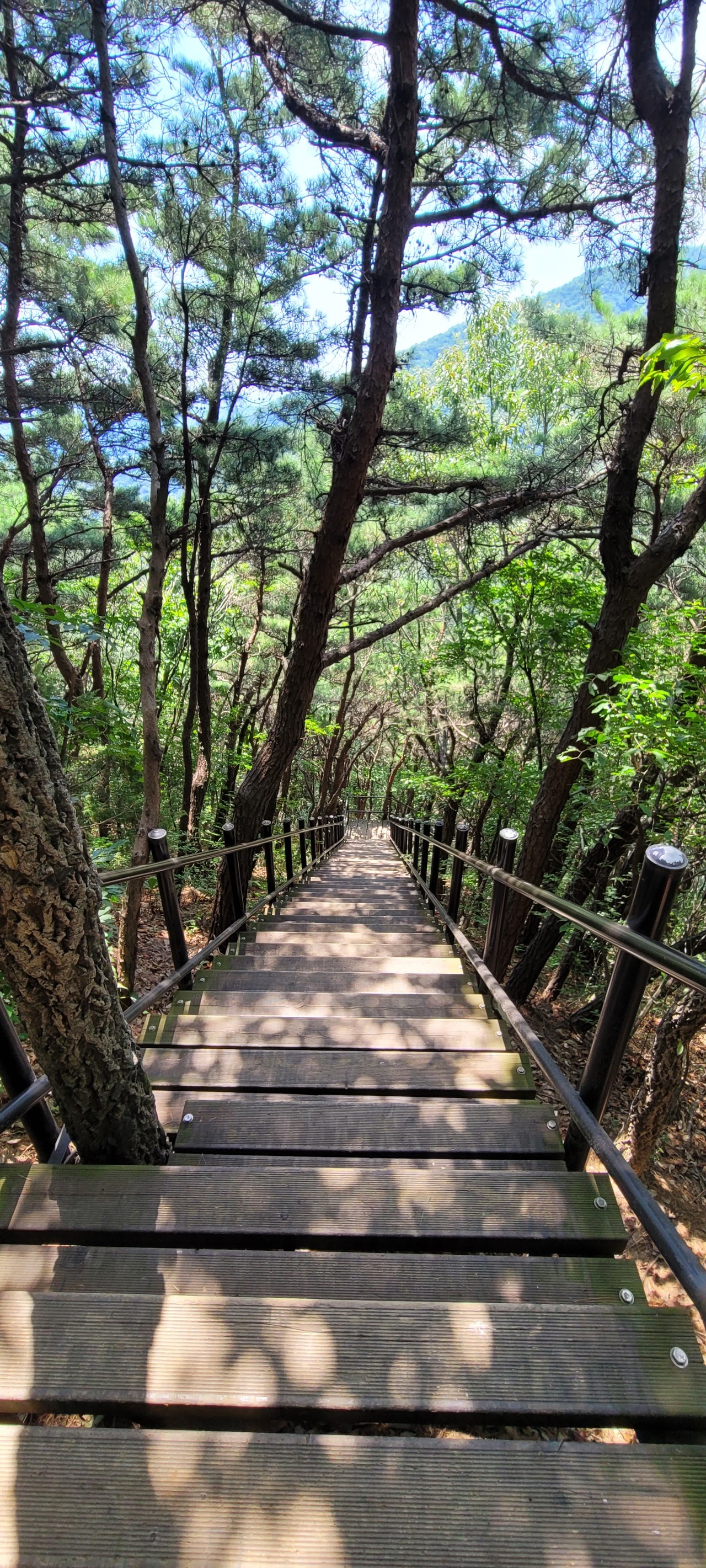 와, 이런 곳이 있었나. 자연스럽게 휴대전화를 꺼낸다. 사진을 찍고 영상을 찍으면서 날머리를 향해 내려간다. 이 숲을 알게 된 후 내게는 최고의 계단운동터로 자리 잡았다. 오르내리기 좋고 적당한 길이의 계단, 무엇보다 피톤치드 퐁퐁 느껴지는 환경은 최고였다. 운동을 하면서 금세 기분 좋아지는 곳이다.