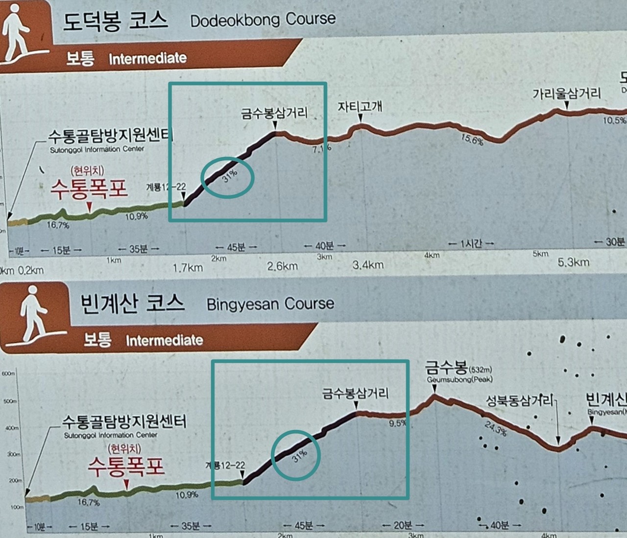 그런데 이 구간 만만찮다. 내려가는 것도 호락호락하지 않다. 내려가면서도 땀 꽤나 뺐다. 나중에 안 것이지만, 이 구간 경사도가 31%였다. 올라오시는 분들이 인사도 못 할 정도의 힘듦 강도가 느껴졌다. 또 하나 배웠다. 산행 중 무조건 인사는 자제해야겠다.