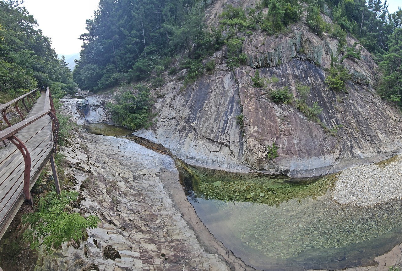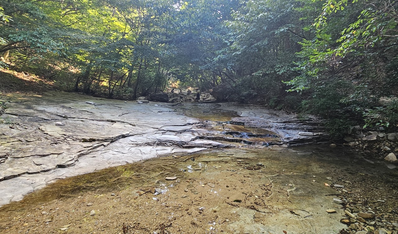 드디어 사람들 목소리가 들린다. 화산계곡 물소리도 살짝 들린다. 이날은 비가 거의 안 오던 시기여서 물이 많이 말랐다. 산도 계곡도 나도 목마르다.