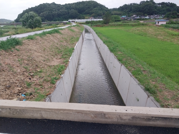 이 사업은 반복되는 용수 부족으로 농업에 어려움을 겪고 있는 지역의 상황을 개선하기 위해 올해 3월 초부터 8월 초까지 총사업비 6억 4000만 원을 투입해 남일면 마장리 일원 용배수로 425m를 정비했다