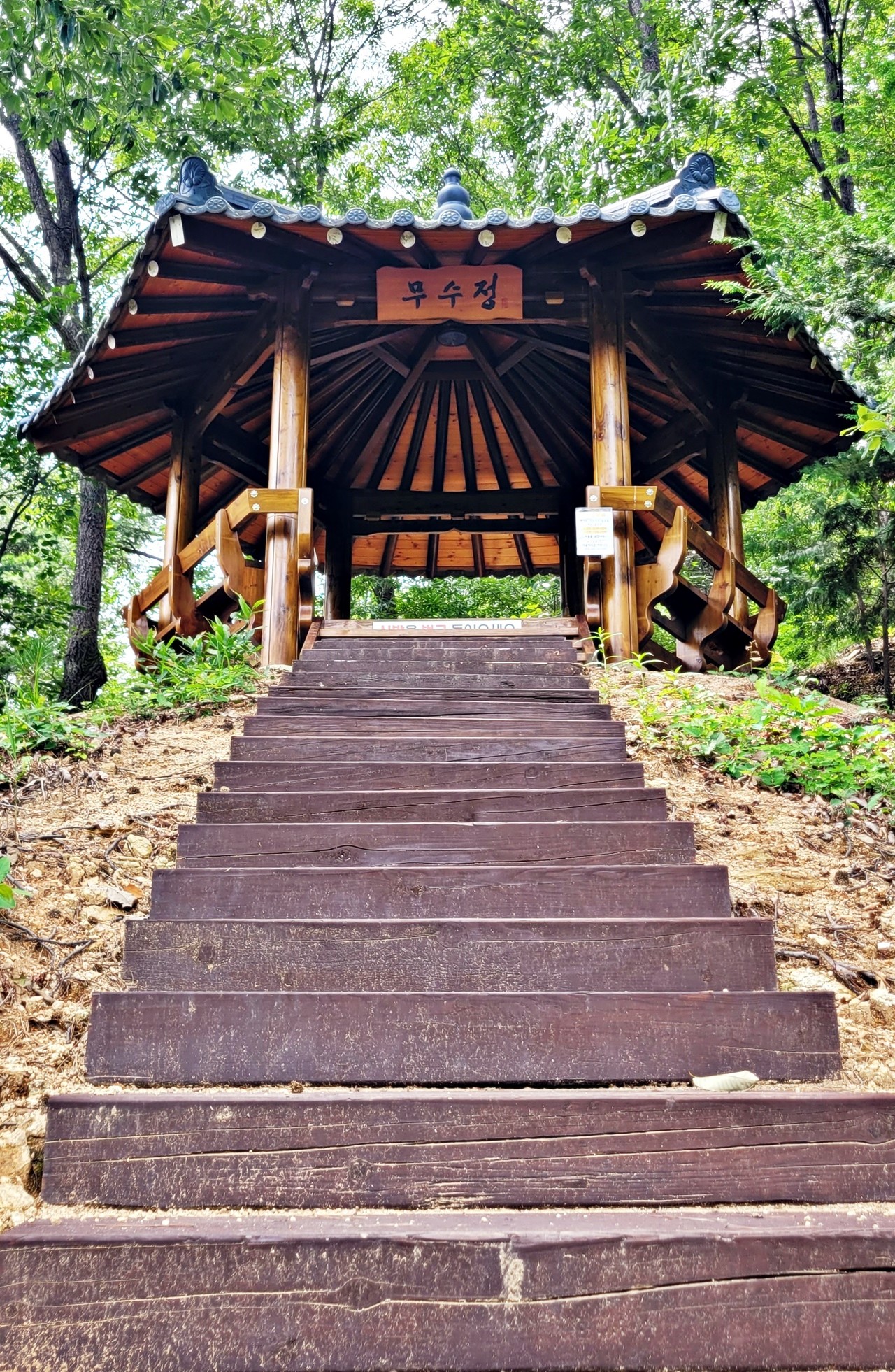 바람목욕장 ‘풍욕장’에 서있다. 바람이 오가는 둥근 공간. 바람이 발 아래서도 온다. 바람이 통하게 시설됐다. 풍욕장 지나 모두숲길을 걷다보면 전망대로 향한다. 여기서 두 번째 시그니처 무수정을 만난다. 평범한 정자 쉼터지만 이름이 가진 내공이 꽤 깊다. 근심 없는 마을 무수동의 근심 없는 정자, 무수정. 계단 타고 올라 신발 벗고 양말 벗고 한참을 쉰다. 무수정에서도 바람의 위로가 이어진다.