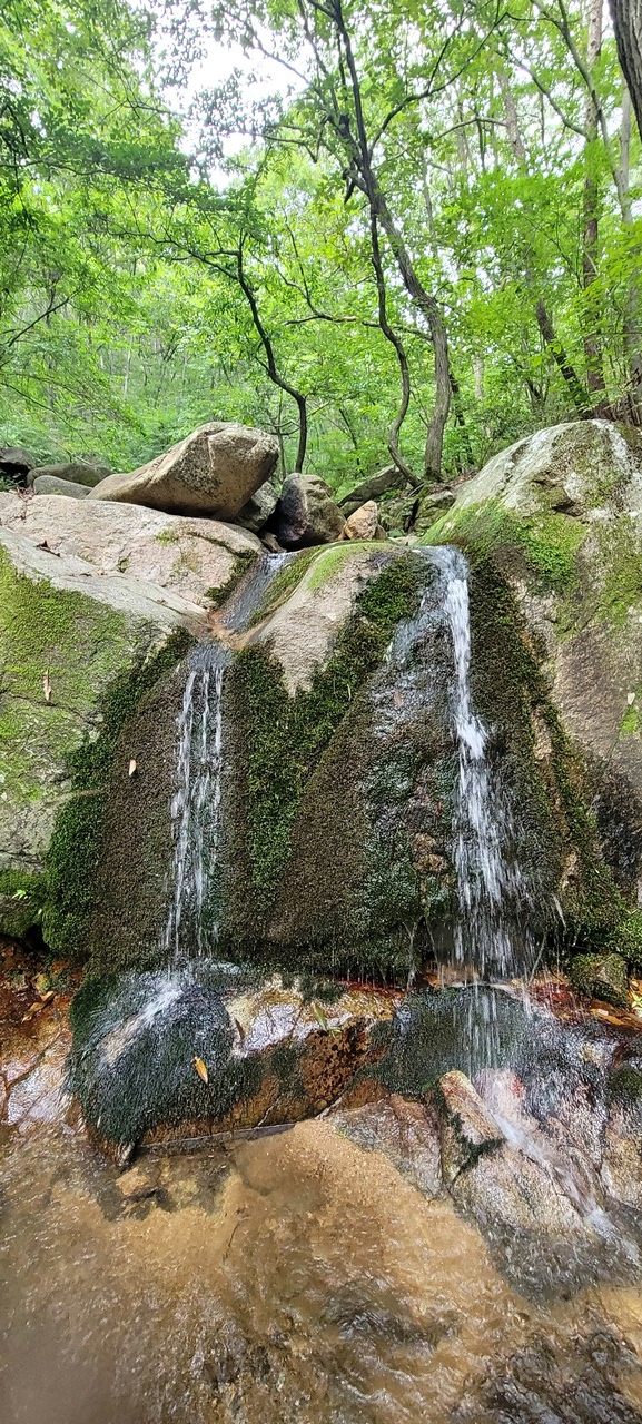 길 따라 바람이 분다. 햇살이 숲 그늘 사이로 스며든다. 계곡 물 흐르는 소리에 반한다. 계곡과 길이 만나는 곳에 세족장이 있다. 물이 흐르는 길, 자연세족장이다. 조금 더 숲길을 가면 세 번째 시그니처가 나온다. 폭포. ‘음이온의 창고’다. 큰 규모는 아니지만 두 갈래 물길이 떨어지는 폭포다.