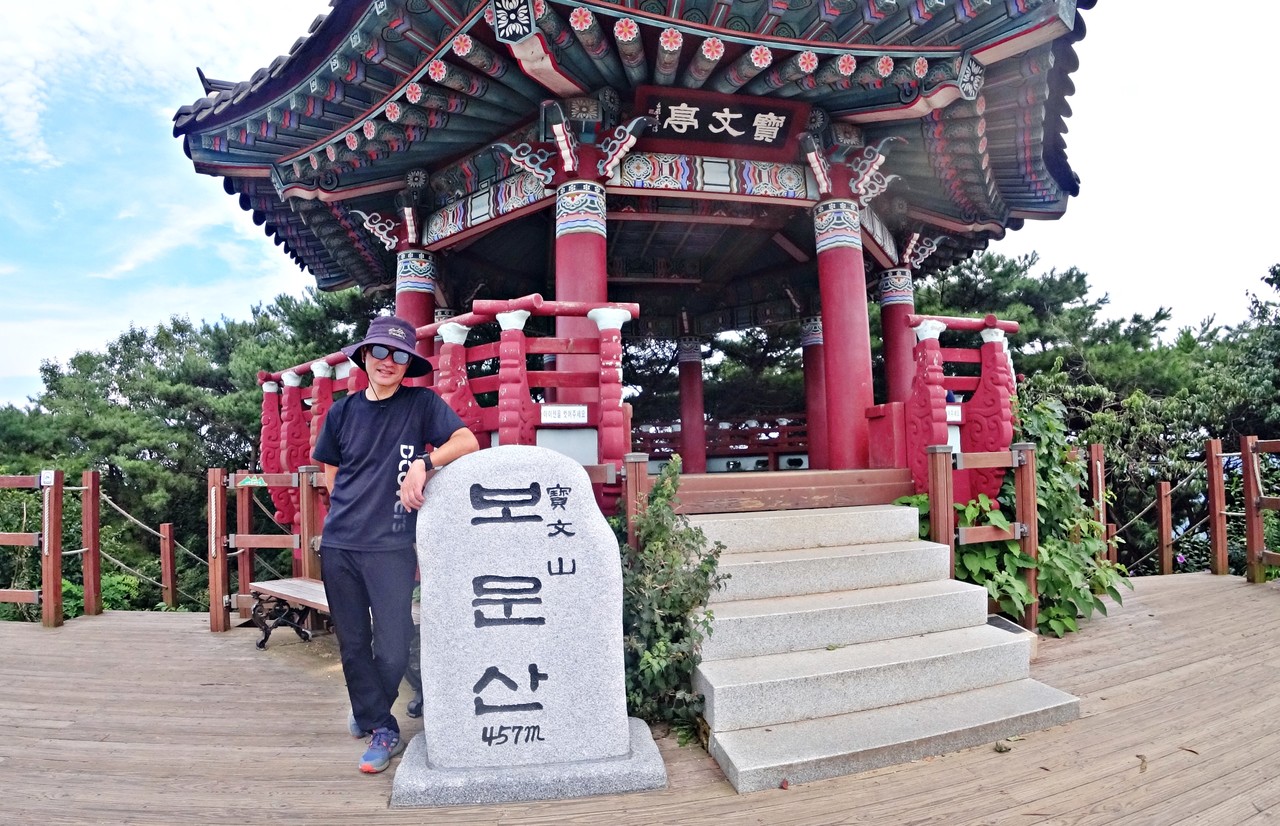 보문사지를 벗어나 10여 분 숲길 오르면 보문산 행복숲길을 만난다. 행복숲길 올라타자마자 이정표. ←보운대 5.49㎞, ↖시루봉 1.05㎞, →오월드 2.3㎞. 까치고개로 치고 올라간다. 능선에서 물 한 모금, 땀을 식힌다. 곧 시루봉 오르는 나무계단을 밟는다. 시루봉에 올라 보문정 앞에 우뚝 서있는 보문산 정상석(457m)과 만난다. 대전 5대 명산 정상석 다섯 곳 중 3번째다. 시루봉에서 보니 보문산성 장대루 공사가 시작됐나보다. 정상석 인증사진 찍고 보문산성으로 향한다. 시루봉에서 1.1㎞.