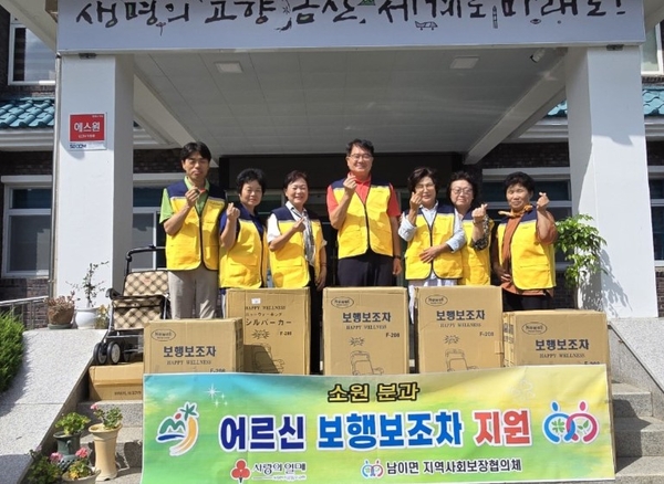금산군 남이면지역사회보장협의체는 지난 19일 거동이 불편한 저소득 어르신 6명의 이동 편의를 위해 보행보조기를 전달했다.