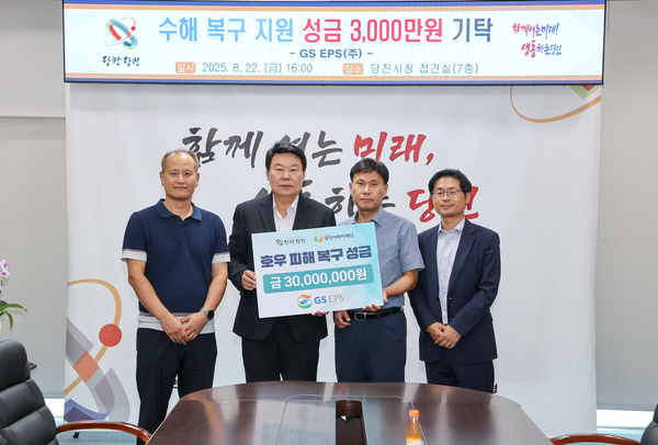 당진시 송악읍에 위치한 GS EPS㈜(대표이사 김석환)는 지난 22일 시청 7층 접견실에서 수해 성금 3000만 원을 기탁했다.