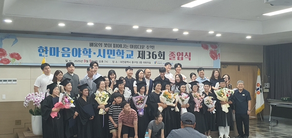 이날 졸업식은 긴 시간 이어온 이어달리기의 결실이었다. 36년간 2000여 명에 가까운 졸업생을 배출한 한마음야학은 여전히 40여 명의 자원봉사 교사가 무대 뒤에서 학생을 돕고 있다. 교사와 학생, 가족이 한자리에 모여 서로의 노고를 나누며 배움의 가치를 되새겼다. 늦게 핀 배움의 꽃은 더 환하게 빛났다.