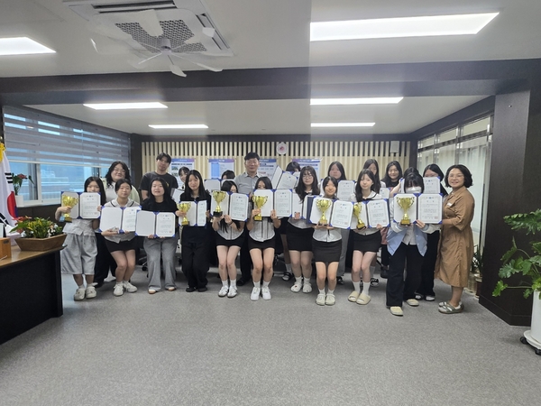 서천여자정보고등학교(교장 전휴황)는 지난달 26일 천안 유관순체육관에서 개최된 제9회 충남지사배 전국미용경기대회에 17명의 학생이 참가해 금·은·동상 종합 25개를 수상하는 쾌거를 이뤘다고 8일 밝혔다. 특히 참가 학생 전원이 수상의 영광을 안아 의미를 더했다.