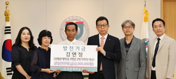 충남 아산 선문대학교(총장 문성제)는 선문대 재학중 안타깝게 세상을 떠난 고(故) 김연정 양의 가족으로부터 대학 발전기금 1000만 원을 전달 받았다고 9일 밝혔다.