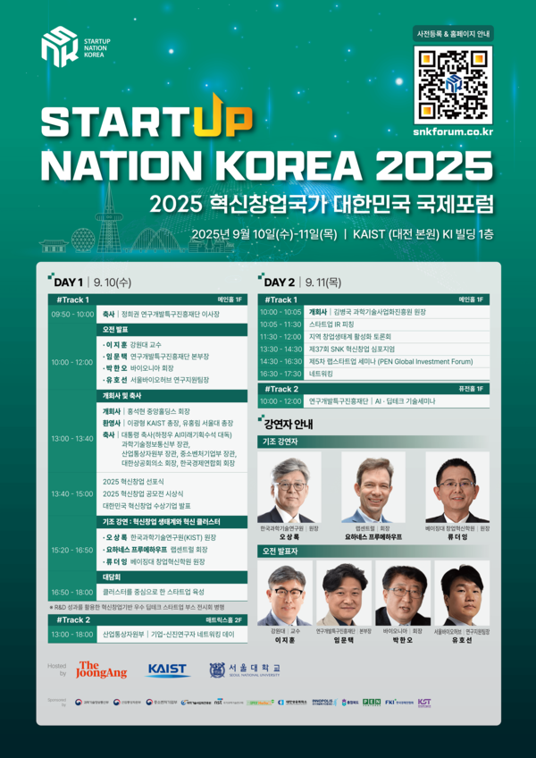KAIST는 제4회 ‘2025 혁신창업국가 대한민국 국제포럼(STARTUP NATION KOREA 2025)’을 10일부터 11일까지 대전 KAIST 본원 KI빌딩에서 개최한다고 9일 밝혔다.