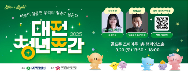 대전시와 대전청년내일재단이 오는 20일 오후 2시, 골프존 조이마루 1층 챔피언스 홀에서 ‘2025 대전 청년주간 기념행사’를 개최한다.