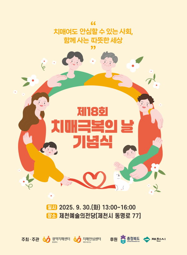 충북 제천시보건소는 오는 30일 오후 1시, 제천 예술의전당에서 ‘제18회 치매극복의 날 기념식 및 주간 행사’를 개최한다고 22일 밝혔다.