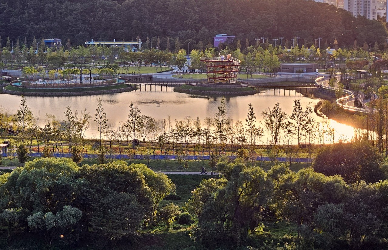 말 그대로 우여곡절, 사연 많았던 갑천호수공원이다. 2006년부터 추진하기 시작했지만 설익은 계획 때문이었는지 공회전을 거듭했다. 2015년 돼서야 사업계획 및 실시계획 승인을 시작으로 추진 10년 만인 2016년 본궤도에 올랐다. 그리고 2022년 4월 착공해 2025년 9월 27일 개장식을 갖게 됐다.
