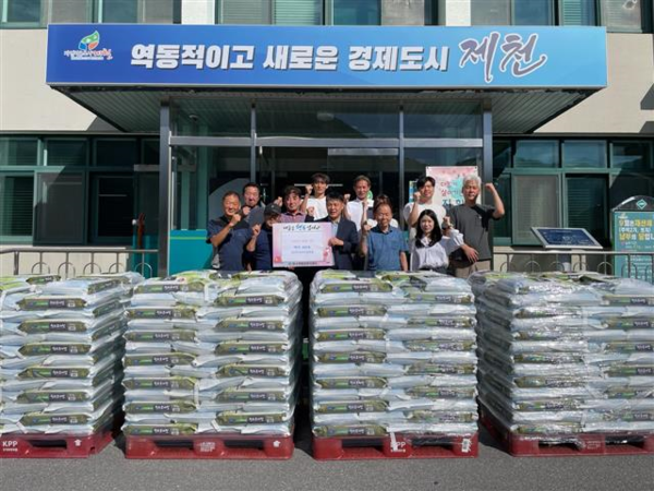 충북 제천시는 ㈜전국24시콜화물 윤수명 대표(한수면 출신)가 추석을 앞두고 고향의 이웃을 위해 백미 400포를 기탁하며 나눔을 실천했다고 24일 밝혔다.
