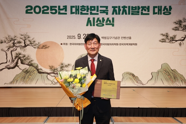 충북 제천시의회 박영기 의장이 지난 23일 한국자치발전연구원이 주최한 ‘2025 대한민국 자치발전 대상’ 기초부문 대상을 수상했다.