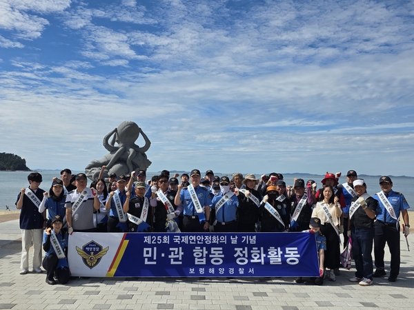 보령해양경찰서(서장 이근영)는 '제25회 국제연안정화의 날을 맞아 지난 23일, 보령시 무창포해수욕장 일원에서 민·관 합동 정화활동을 실시했다.