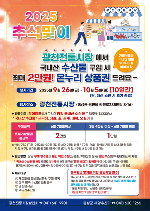 26일~10월 5일 광천전통시장 ··· 최대 2만 원 되돌려줘