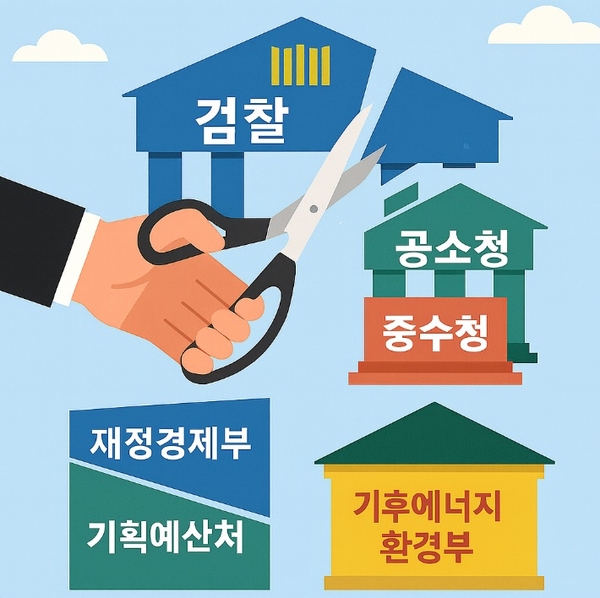 환경부는 기후부로 확대 개편된다. 산업통상자원부가 맡아온 전력·재생에너지 등 에너지 전환 정책이 기후부로 이관되면서 기후·에너지·환경을 아우르는 통합 컨트롤타워가 구축된다. 원자력은 건설·운영을 기후부, 수출은 산업부가 맡는 분담 체계로 조정되고 석유·천연가스·석탄 등 화석연료 정책은 산업부 소관으로 유지된다. 기후부는 생태 보전·오염 관리·환경 규제에 더해 탄소중립, 기후변화 대응, 재생에너지 확대, 전력 수급 조정까지 총괄한다. 이를 뒷받침할 기후전략·에너지정책 전담 조직이 신설되고 기재부 소관이던 기후대응기금과 녹색기후기금도 기후부로 이관돼 정책 설계에서 예산 집행까지 원스톱으로 운용된다. 정부는 기능 통합으로 중복 사업을 줄이고 예산·인력을 효율화할 수 있다고 보지만 실제 성과는 전력 수급 안정과 온실가스 감축을 동시에 달성할 실행력에 달려 있다는 목소리가 나온다.