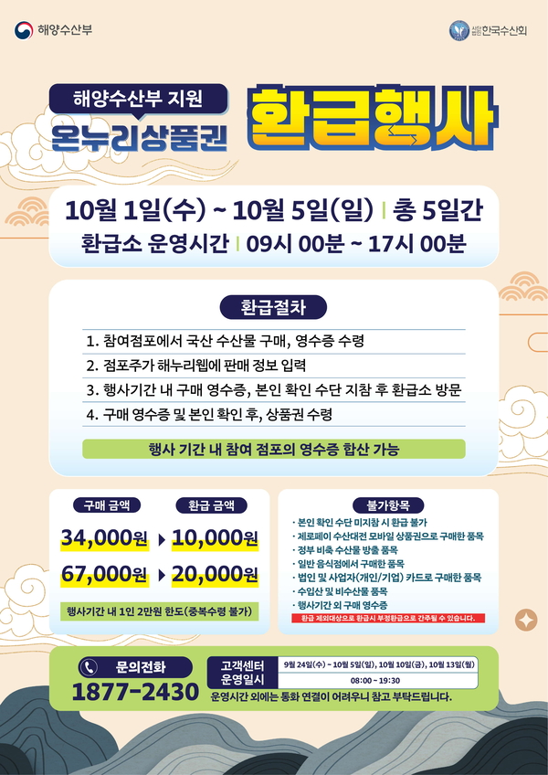 국산 수산물 구매 시 최대 2만 원 환급