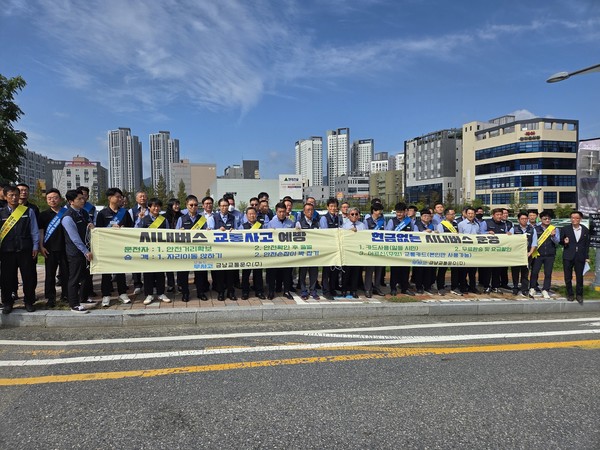대전 시내버스 업체 금남교통운수(대표 김경환) 관계자들이 29일 서구에 위치한 목원대학교 기점지에서 대전시청, 버스조합, 교통안전공단 등 관계기관과 시내버스 교통사고 예방 캠페인 활동인 '시민의 안전은 시내버스가 책임진다' 는 다짐 대회를 열고 있다. 금남교통운수 제공