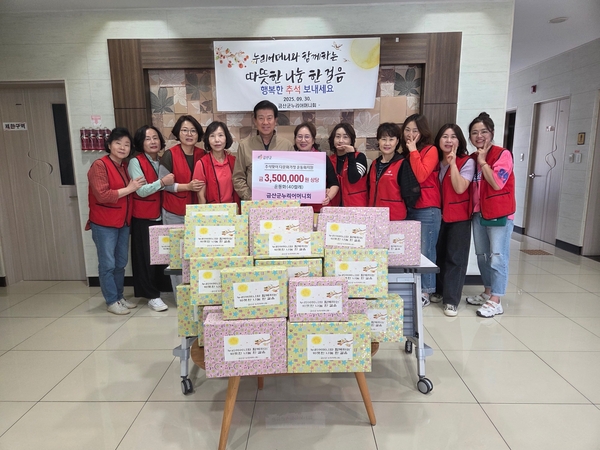 금산군누리어머니회(회장 임예순)는 추석 명절을 맞아 9월 30일 다문화가정 자녀들의 건강한 성장을 응원하기 위해 350만 원 상당의 운동화 40켤레를 기탁했다.