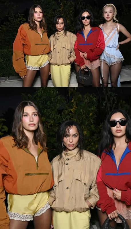 논란의 사진은 지난달 29일(현지시간) 프랑스 파리에서 열린 생 로랑 쇼에서 촬영된 것으로, 모델 헤일리 비버, 배우 조이 크라비츠, 인플루언서 데비 한, 블랙핑크 로제까지 총 4인이 함께한 장면이었다.