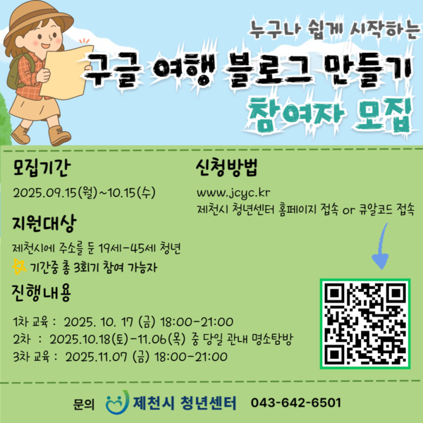 충북 제천시 청년센터에서 영어 여행블로그 만들기 참여자를 모집하고 있다.
