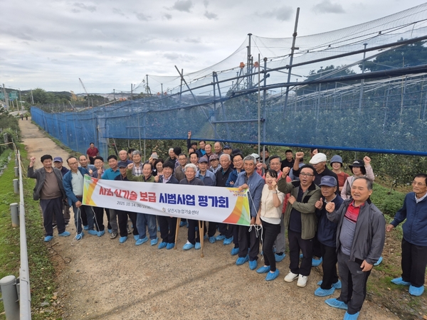 당진시농업기술센터(소장 김석광)는 지난 14일 과수 농가 농민 50여 명이 참석한 가운데 사과분야 신기술 보급 시범사업 평가회를 개최했다고 밝혔다.