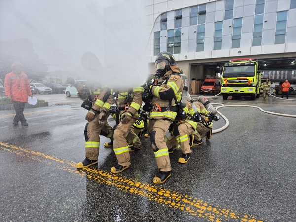 주요 훈련 내용은 저층·고층·지하층 화재진압 및 인명구조, 유류·유해화학물질 화재 대응, 전기자동차 화재진압 등 실전 대응 중심으로 자체 평가를 통해 수행역량을 점검하고 실전 능력을 강화했다.