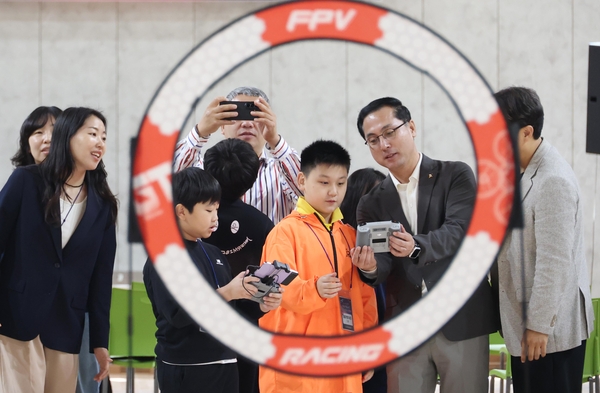 박희조 대전 동구청장(오른쪽)이 최근 구청에서 열린 ‘우리는 드론매니아 드론가족 중급반’에서 참여 가족과 함께 드론을 조종하고 있다. 중급반은 ‘2025 동구 드론 체험프로그램 클래스’신규 과정으로 수준 높은 실습 중심으로 이뤄지며 호응을 얻었다.