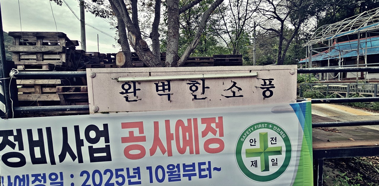 아, 낭만갑천길은 정식 명칭이 아니다. 개인적으로 붙인 이름이다. 왼쪽은 산이요 오른쪽은 갑천, 낭만적인 오솔길이다. 자전거 타는 사람들에게도 익히 알려진 길이다. 그런데 ‘자전거길 폐쇄’ 안내가 붙었다. 도로 침하로 붕괴 위험 때문에 보수·보강 때까지 폐쇄됐다. 언제 어떻게 보강될지 모르지만 그동안 품었던 낭만이 사라질까 걱정된다. 사실 폭이 좁아서 자전거 통행 안전문제도 있긴 했었다. 보강하면서 폭도 넓히면 좋겠다. 인근 낮은 다리를 건너 갑천 건너편으로 간다. 과거와 현재를 잇는 특별한 터널, 충청권역 유물창고 [예담고] 앞을 지난다. 아스파트길 조금만 밟으면 장평보유원지 정류장이다. 마침 25번 버스가 오고 있다. 오늘도 ‘완벽한 소풍’이었다.