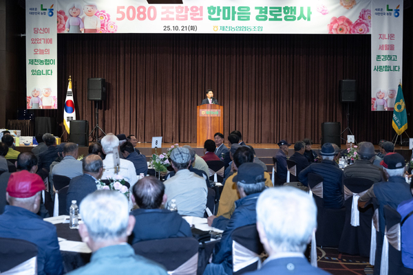 충북 제천농협이 지난 21일 설립부터 함께 한 조합원 250여 명을 모시고 ‘5080조합원 한마음 경로행사’를 개최했다고 22일 밝혔다.