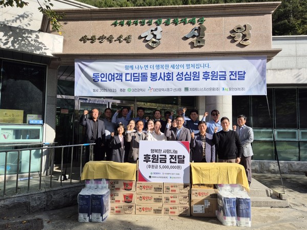 차종현 차파트너스자산운용 대표이사와 한강수 동인여객 대표이사는 “지역의 이웃과 함께 성장하는 기업이 되기 위해 작지만, 진심 어린 나눔을 이어가고자 한다. 교통 서비스뿐 아니라 다양한 사회공헌활동을 통해 시민들에게 받은 사랑을 되돌려 드리겠다”라고 밝혔다.