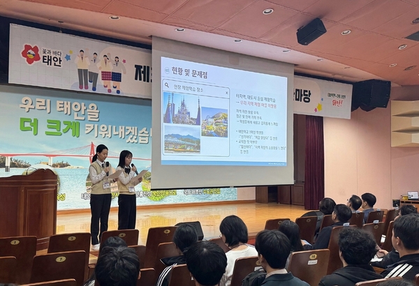 이날 청소년들은 마을 학교를 활용한 디지털 중독 치유교실 운영(태안여고 김수인·이주희), 관계 인구를 위한 지역화폐 활성화(태안여고 박은서·고진주·유혜린), 찾아가는 진로·진학 상담 프로그램 도입(태안여중 강수정), 로컬푸드 소비 및 활성화 축제(태안고 최명진·김보미·김도윤·김민성·김도연), 청소년·어르신 세대공감 동행 프로젝트(태안중 김세연·박준우·최준범) 등을 주제로 발표해 관심을 끌었다.
