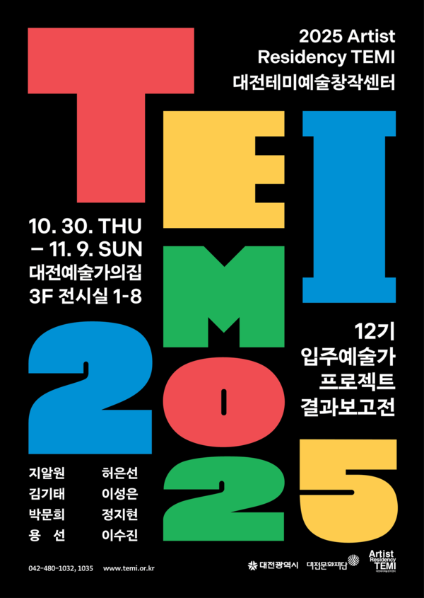 대전문화재단이 운영하는 시각예술 레지던시 대전테미예술창작센터는 오는 30일부터 11월 9일까지 12기 입주예술가 8인의 결과보고전을 대전예술가의집 3층 전시실 전관에서 개최한다. 12기 작가들은 올해 2월 테미예술창작센터에 입주하여 창작활동, 멘토링, 교류 프로그램 등 다양한 레지던시 지원을 기반으로 개별 창작역량을 발전시켜 왔다. 이번 전시는 작가 개별 작업의 특성을 유지하며 하나의 전시 동선 안에서 구성되는 통합형 결과보고전이다. 결과보고전 참여작가들의 작업도 각자 다른 방향과 매체로 구성된다. 주요 참여작가는 사회적 질서와 욕망의 충돌을 회화로 풀어낸 김기태 작가, 불안전한 존재와의 마주침을 통해 인간의 불안과 열망을 표현한 용선 작가, 인물의 몸짓을 통해 시공간을 확장하며 다차원적 소통을 영상화한 박문희 작가, 서로 다른 공간을 교차하는 두 여성의 움직임을 영상으로 구성한 이성은 작가, 개인의 내면과 외부세계의 긴장을 유령으로 시각화한 이수진 작가, 실종자에 관한 문자로 출발하여 실종의 서사를 그려낸 정지현 작가, 도시의 구조와 질서 속에서 드러나는 균열을 잡초와 작은 입체물로 전달하는 지알원 작가, 불안과 안전의 경계에서 발생하는 신체적 감각을 퍼포먼스 비디오로 구현한 허은선 작가다. 이번 전시는 휴관일 없이 10시부터 18시까지 무료로 관람 가능하며, 단체 관람객 대상 전시 도슨트 프로그램을 제공한다. 자세한 내용은 창작센터 누리집또는 센터 사무실(042-480-1032, 1035)로 문의하면 된다.