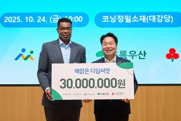 한편 이날 코닝정밀소재 대강당에서 열린 ‘해맑은 디딤씨앗통장 후원금 전달식’에서는 반 홀 대표가 오세현 시장에게 경제적으로 어려운 아동들의 자립기금 조성을 지원하기 위한 후원금 3000만 원을 전달 했다.