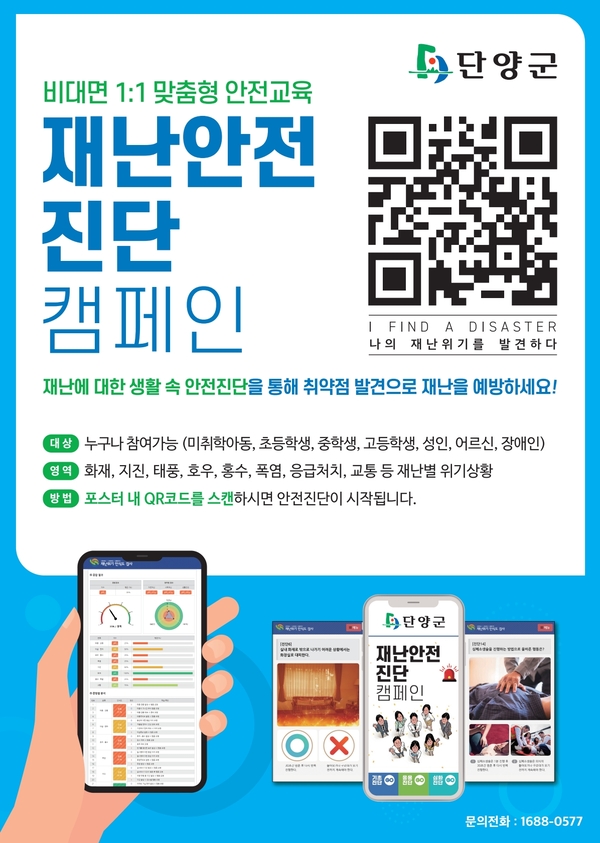 또 재난안전 진단 포스터와 배너를 군청 민원실, 읍·면사무소, 버스정류장, 아파트 단지, 각 매장 등에 배포하고 QR코드를 통해 누구나 쉽게 참여할 수 있도록 안내할 예정이다.