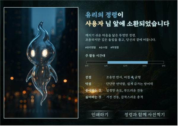 팀 프롬프트(김병진·김지연·류정민·이민욱·이형연·박지현)의 자체 기획으로 제작한 프로그램은 개인에게 어울리는 숨겨진 정령을 소환하는 체험형 전시다. 사용자의 특징과 성격을 분석한 후 이를 토대로 정령의 이미지와 성향을 출력해 관람객에게 색다른 경험을 선사한다.