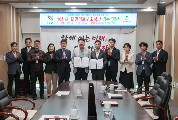 당진시(시장 오성환)는 대한법률구조공단(이사장 김영진)과 지난 27일 당진시청 접견실에서 사회복지 전달체계와 연계한 지역 주민 대상 법률복지 향상을 위한 업무협약을 체결했다고 28일 밝혔다.