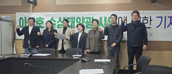 이에 시의원들은 한국농어촌공사의 아산호 수상 태양광 제3자 공모 중단 및 아산시·주민들과의 사전협의 진행, 아산시의원들을 무시한 담당 부서장과 직원에 대한 즉각적인 인사 조치 및 공식 사과, 아산시 탄소중립특별위원회 감사 수용등을 요구했다.