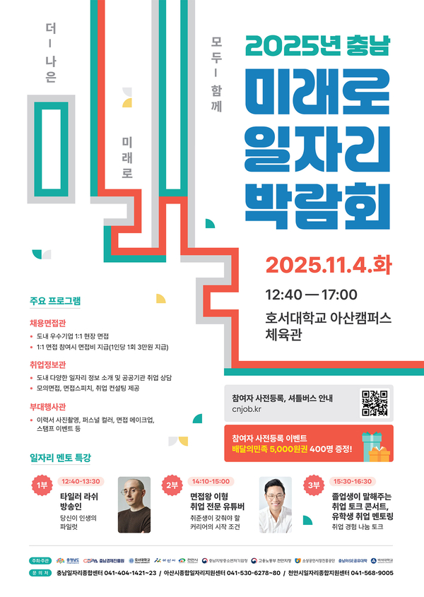 한편 ‘2025년 충남 미래로 일자리 박람회’는 이날 오후 1시부터 5시까지 진행된다.