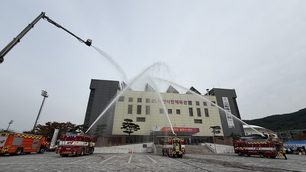 이날 훈련은 인근 해역에서 발생한 지진으로 다수 이용 체육시설이 붕괴하고, 화재와 폭발 등이 발생한 상황을 가정해 진행됐다.