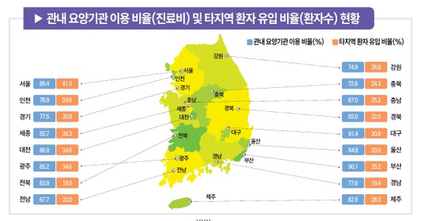 국회 보건복지위원회 소속 더불어민주당 장종태 의원(대전 서구을)에 따르면 2023년 빅5 병원을 찾은 환자는 266만 146명인데 이 중 비수도권 환자가 차지하는 비율은 27.1%(72만 1930명)였다. 이 비율은 2020년 25.5%, 2021년 25.8%, 2022년 26.6% 등 해마다 늘고 있는 추세다. 원정 진료 환자는 2020년 59만 3577명에서 4년 새 21.6% 늘었는데 이는 수도권 환자 수 증가율(11.9%)과 비교해 2배나 높다. 환자 1인당 진료비는 비수도권 환자(평균 326만 원)가 수도권 환자(217만 원)보다 100만 원 이상 많은데 비수도권 환자들은 원정을 위한 장거리 이동과 숙박 등의 불편 등을 감수하고라도 기꺼이 서울로 향하고 있다. 지방 환자들이 교통비와 숙박비를 포함해 이중, 삼중의 비용을 들여가며 서울 의료기관, 특히 빅5 병원으로 향하는 건 지방 의료인프라가 그만큼 상대적 열세에 놓여 있다는 방증이다.