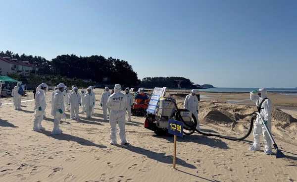 군은 지난 4일 소원면 천리포 해수욕장에서 태안해양경찰서와 보령해양경찰서, 대산해양수산청, 서산시, 국립공원공단, 해양환경공단, 태안소방서, 해양구조협회 등 19개 기관·단체·업체 관계자 총 100여 명이 참여한 가운데 ‘2025년 민·관 합동 해안방제 교육·훈련’을 진행했다고 밝혔다.