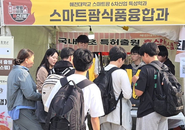 혜전대는 최근 열린 '홍성글로벌바비큐페스티벌' 기간에 홍산마늘 햄 시식회를 열어 제품의 시장성과 성공 가능성을 확인했다.