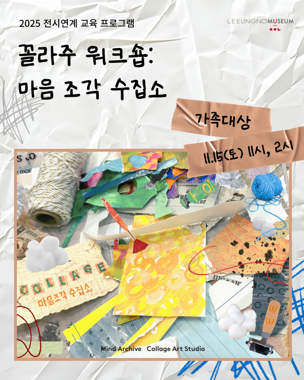 첫 번째 프로그램인 ‘마음조각 수집소’는 이응노의 질감 표현 기법을 직접 체험하며 우리 가족의 소중한 가치와 이야기를 담은 콜라주 작품을 제작한다.
